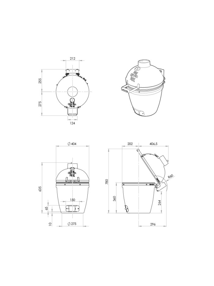 Bien qu’étant compact, le Small offre beaucoup de possibilités. Il peut facilement être utilisé pour préparer des repas pour 4 à 6 personnes ou cuisiner un délicieux poulet farci ou une échine entière.