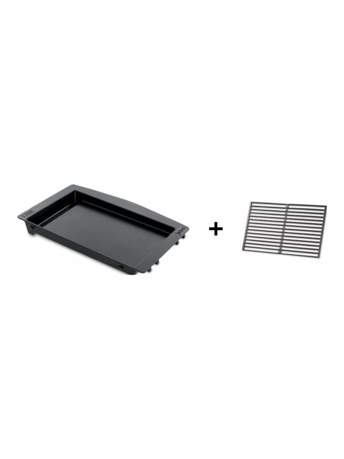 Plancha : plancha en fonte émaillée offrant une rétention et une distribution de chaleur exceptionnelles pour une cuisson uniforme des aliments ; surface émaillée semi-brillante facile à nettoyer ; surface de cuisson inclinée tenant les gouttes éloignées des aliments.