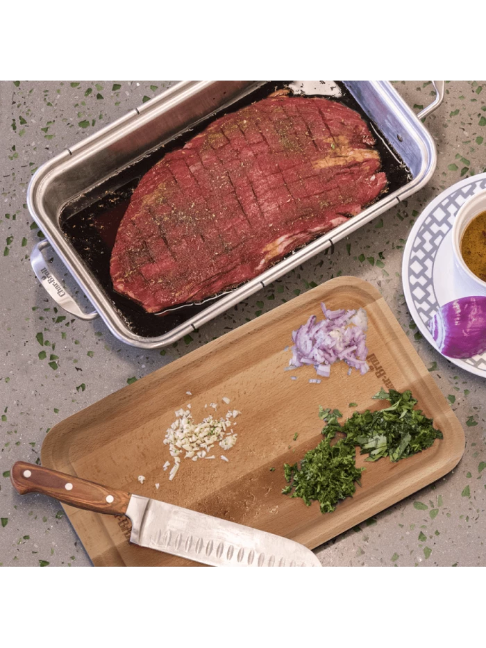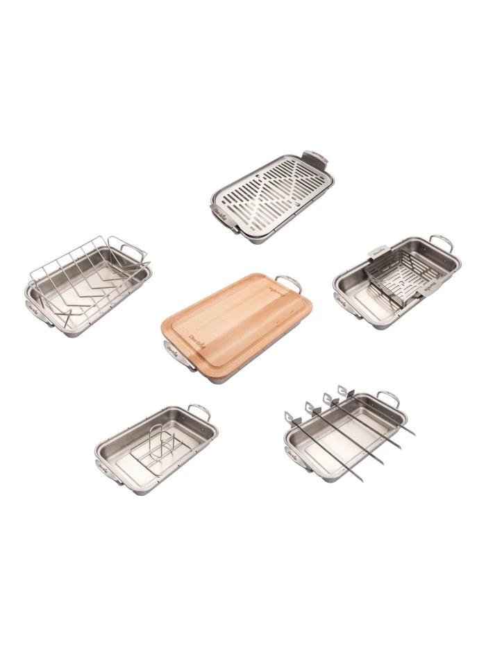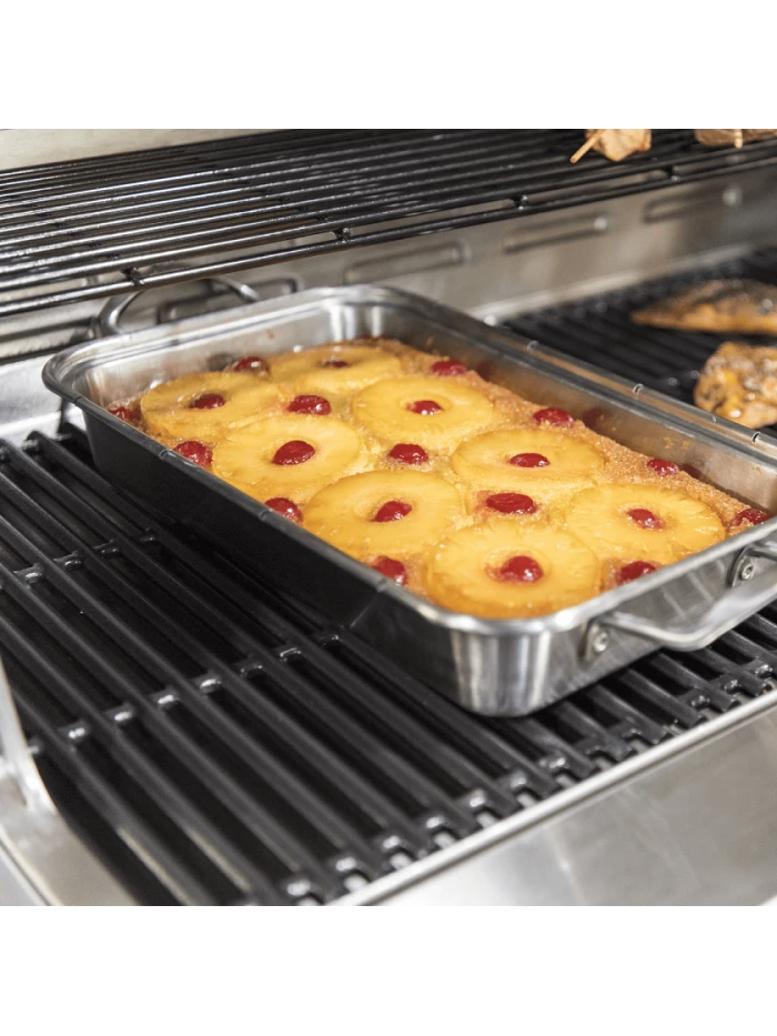 • Plat 22 x 36 cm en acier inoxydable, utilisable au barbecue ou au four