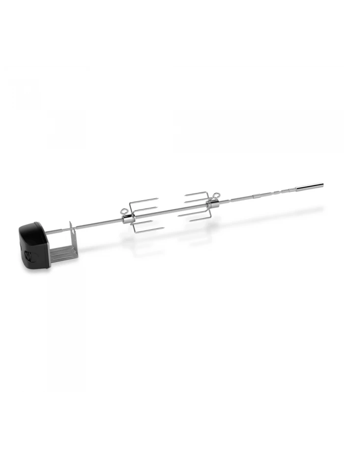 Faites cuire à la broche au dessus des flammes vos dindes, rôtis, filets de porc, ou même vos travers de porc, pour une viande parfaitement croustillante. Conçue pour s’adapter à la cuve des barbecues à gaz des séries Genesis® II, Genesis® II LX 200 et 300 et Genesis® 300, la rôtissoire Weber comprend un axe en acier inoxydable de 107 cm, deux fourches permettant d’accueillir des aliments de toutes tailles, les accessoires nécessaires et un moteur électrique qui fait tourner lentement les aliments au-dessus des grilles de cuisson. De plus, le mécanisme rotatif intégré vous permet d’obtenir de la viande juteuse à la cuisson homogène, à tous les coups.